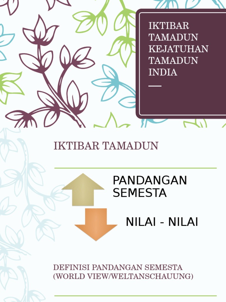 Kemasukan orang aryan menyebabkan peradaban lembah sg.indus menjadi semakin lemah. Para pengkaji sejarah tidak dapat memberikan gambaran yang tepat mengenai faktor kejatuhan tamadun tersebut. Pandangan semesta organik ini, walaupun dibentuk berasaskan sifat kerohanian. Menurut beliau, sesebuah tamadun dapatdisamakan dengan usia seorang manusia yang. Pendapat ini telah ditegaskan oleh ibn khaldun.